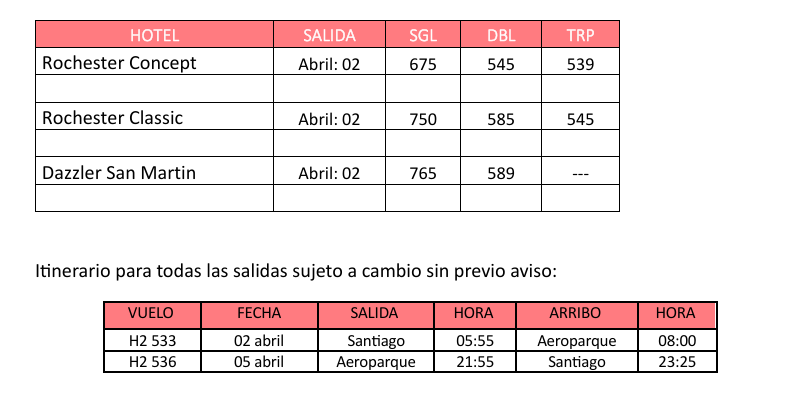 SEMANA SANTA 2026 – CUPOS CONFIRMADOS