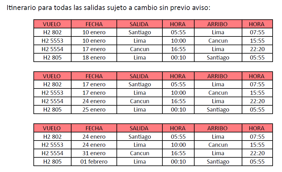 • La emisión del Ticket Aéreo y vouchers de servicios se entregarán al pasajero 72 hrs antes de la fecha del viaje.