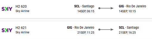 - TKT aéreo Santiago-Rio de Janeiro-Santiago en vuelo SKY (directo) Tarifa STANDARD (Incluye 1 mochila y 1 equipaje de bodega 23 kilos).