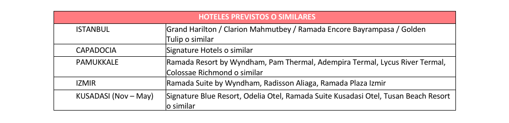 • No incluye entrada a Éfeso (usd 65 por persona se paga en destino).