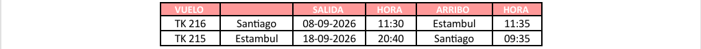 • Documentación de viaje de los pasajeros deben enviarla 65 días antes de la fecha de salida.